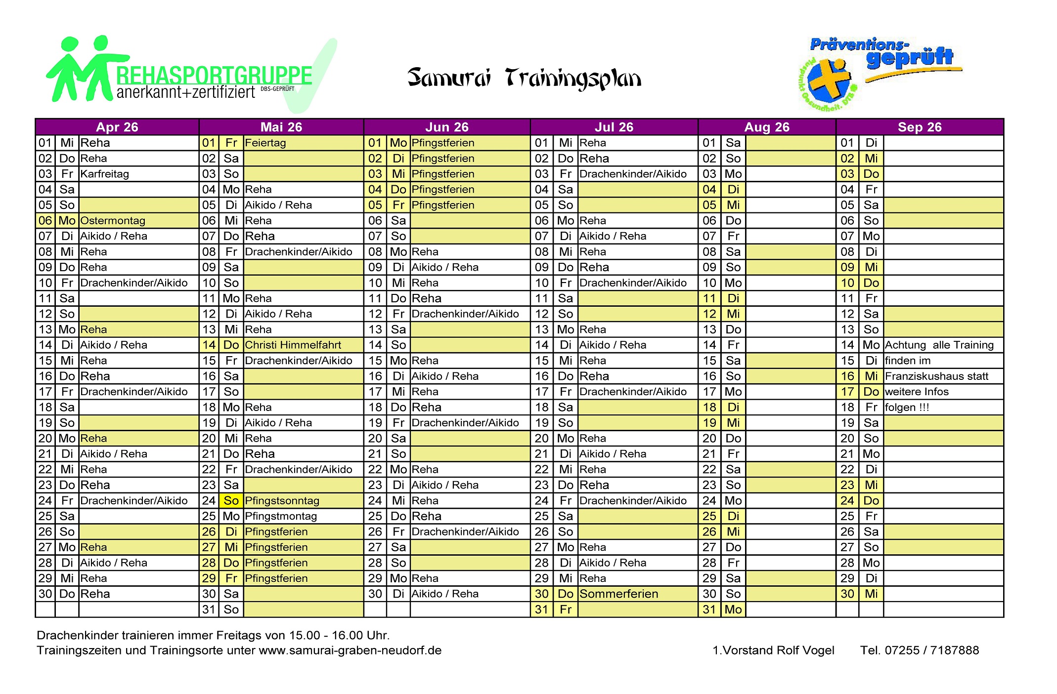 Trainingszeitenplan Sommer 2026 als PDF aufrufen